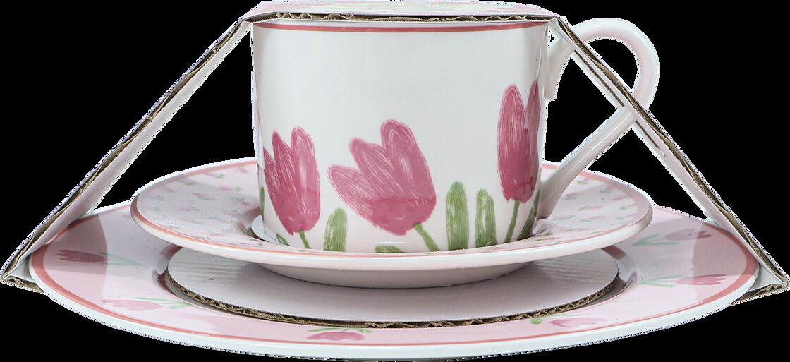 Hello Spring Tulip Tea Set – Elevate Your Afternoon Tea Experience Celebrate the beauty of spring with this charming 3-piece ceramic tea set, designed for elegant afternoon tea, gifting, and everyday use. Crafted from premium food-safe porcelain, this set features a hand-painted pink tulip floral pattern and "Hello Spring" themed packaging, making it a top-selling item for home & kitchen retailers, gift shops, and Amazon sellers. ✨ Core Product Advantages Premium Porcelain Quality: Made of high-fired, lead-free ceramic that is microwave and dishwasher safe, ensuring long-lasting durability for daily use with tea, coffee, or desserts. Elegant Hand-Painted Tulip Design: Each piece features a vibrant, hand-painted pink tulip pattern on a crisp white base, with a soft pink rim and delicate floral accents, creating a fresh, spring-inspired aesthetic that complements any table setting. Complete 3-Piece Set: Includes a 200ml tea cup, a matching saucer, and a dessert plate, perfect for serving afternoon tea, coffee, pastries, or snacks. Ready-to-Gift Spring Packaging: The set comes in a beautifully designed "Hello Spring" gift box with a floral lid, making it a thoughtful, ready-to-present gift for Mother's Day, birthdays, bridal showers, housewarmings, or any spring celebration. Full Customization Support: We offer flexible MOQs, fast production lead times, and full customization services (custom logo printing, floral pattern design, box branding) to meet your private label and retail brand requirements. Versatile Use: Ideal for home use, cafes, tea rooms, restaurants, and as a promotional gift for spring events, Mother's Day, and wedding favors.